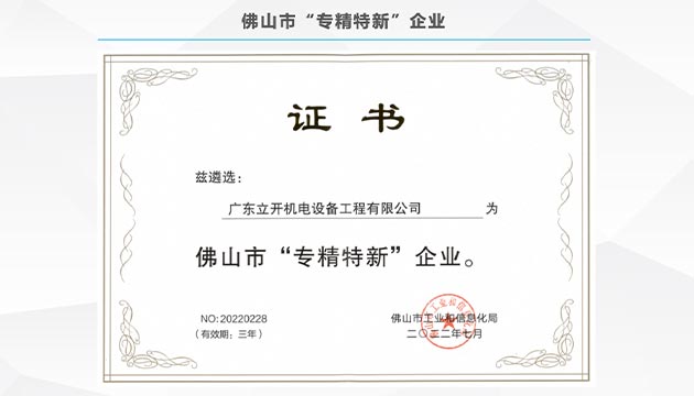 成功申報佛山市《專精特新中小企業》廣東省《專精特新中小企業》、《創新型中小企業》